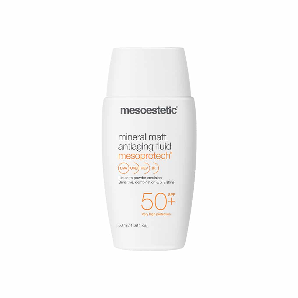 Light antiaging emulsion offering very high factor sunscreen protection SPF 50+ for sensitive, combination and oily skins, that provides a powdered finish on the skin and absorbs excess oiliness and shine – making it suitable for greasy and acne-prone skins. Water resistant and non-comedogenic.
